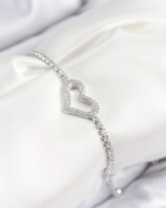 Pirinç Zirkon Taşlı Kalp Model Gümüş Renk Asansörlü Kadın Bileklik