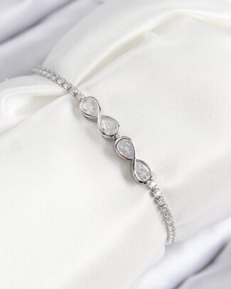 Pirinç Zirkon Taşlı Sonsuzluk Model Gümüş Renk Asansörlü Kadın Bileklik