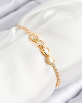 Pirinç Zirkon Taşlı Sonsuzluk Model Gold Renk Asansörlü Kadın Bileklik