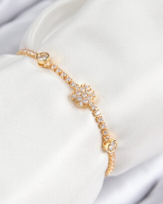 Pirinç Zirkon Taşlı Çiçek Model Gold Renk Kadın Bileklik