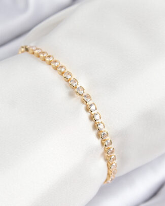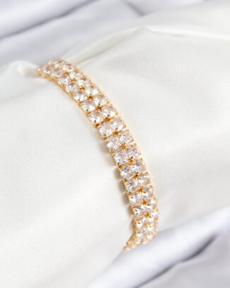Pirinç Zirkon Taşlı Çift Sıra Kare Model Gold Renk Asansörlü Kadın Bileklik