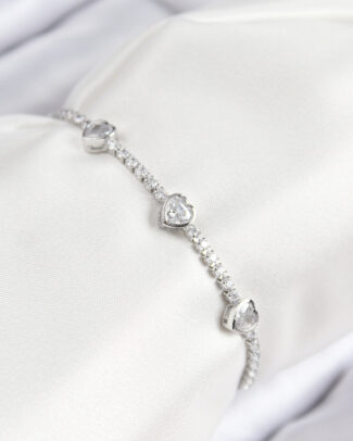 Pirinç Zirkon Taşlı Sıralı Kalp Model Gümüş Renk Asansörlü Kadın Bileklik
