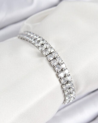 Pirinç Zirkon Taşlı Çift Sıra Kare Model Gümüş Renk Asansörlü Kadın Bileklik