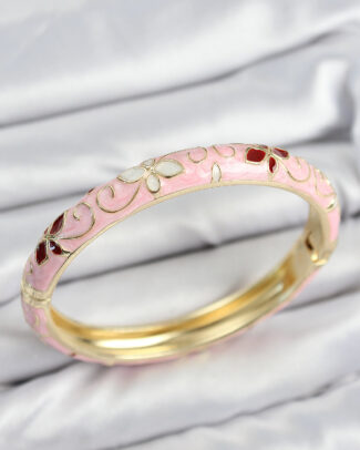 Mineli Pirinç Pembe Çiçek Motifli Gold Kadın Kelepçe