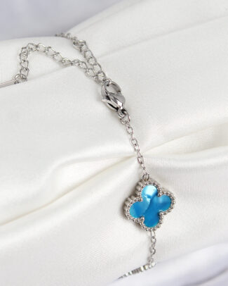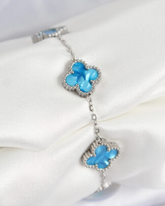 316L Çelik Sedefli Gökyüzü Mavisi Gümüş Renk Yonca Kadın Bileklik