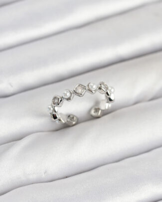 Pirinç Gümüş Renk Zirkon Taşlı İncili Kadın Yüzük