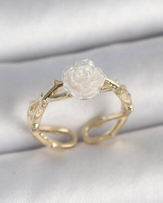 Pirinç Gold Renk Beyaz Gül Model Ayarlanabilir Kadın Yüzük