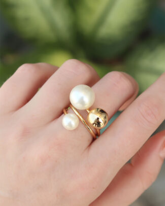 Pirinç Gold Renk Ayarlanabilir İnci Taşlı Yüzük