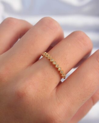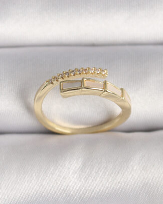 Pirinç Altın Renk Minimal Sıralı Zirkon Taşlı Ayarlanabilir Yüzük