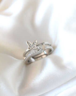 Kelebek Model Gümüş Renk Pirinç Kadın Yüzük