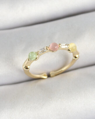 Pirinç Gümüş Renk Renkli Mineli Ayarlanabilir Kadın Yüzük