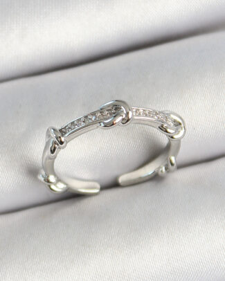 Pirinç Düğüm Figürlü Zirkon Taşlı Gümüş Renk Ayarlanabilir Kadın Yüzük