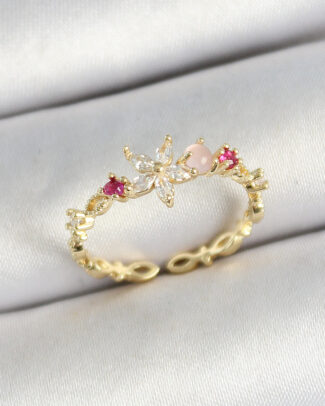 Pirinç Gold Renk Pembe Damla Zirkon Taşlı Ayarlanabilir Kadın Yüzük