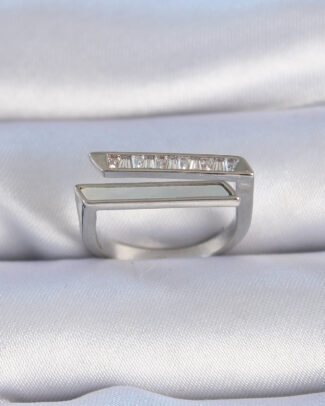 Pirinç Gümüş Renk Zirkon Taşlı Beyaz Sedef Detay Kadın Yüzük
