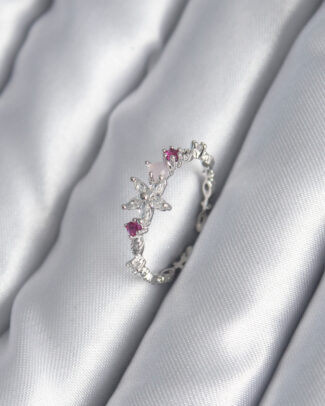 Pirinç Gümüş Renk Zirkon Taşlı Çiçek Model Pembe Zirkon Taş Detay Kadın Yüzük