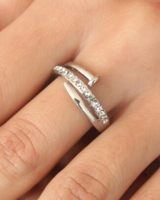 Gümüş Renk Taşlı Çivi Ayarlanabilir Kadın Yüzük
