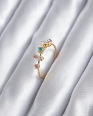 Gold Renk Zirkon Taşlı Renkli Zirkon Taşlı Kadın Yüzük