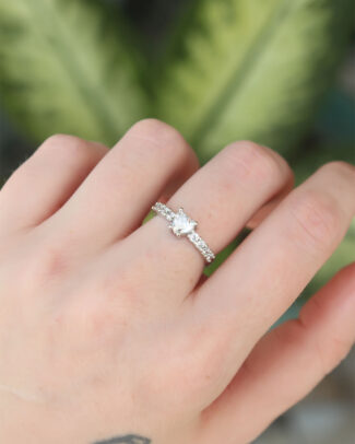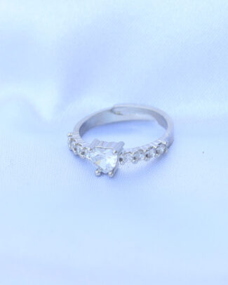 Pirinç Gümüş Renk Zirkon Taşlı Kalpli Model Ayarlanabilir Yüzük