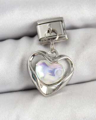 316L Çelik Sallantılı Zirkon Taşlı Kalp Model Gümüş Renk Nomination Charm