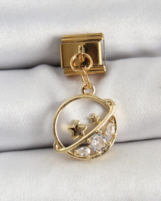 316L Çelik Sallantılı Zirkon Taşlı Satürn Model Gold Renk Nomination Charm