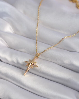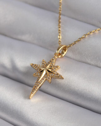 316L Çelik Gold Renk Zirkon Taşlı Kutup Yıldızı Model Kadın Kolye