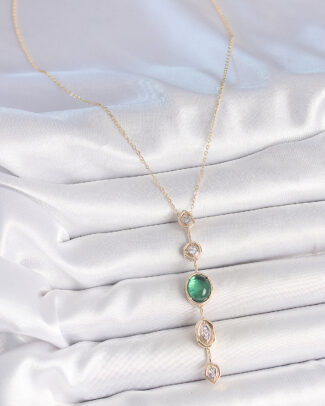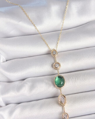 Pirinç Zincir Zümrüt Yeşil Gold Renk Zirkon Taşlı Y Kolye