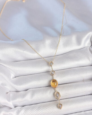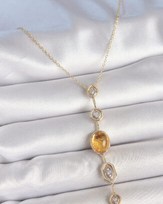Pirinç Zincir Kehribar Sarı Gold Renk Zirkon Taşlı Y Kolye