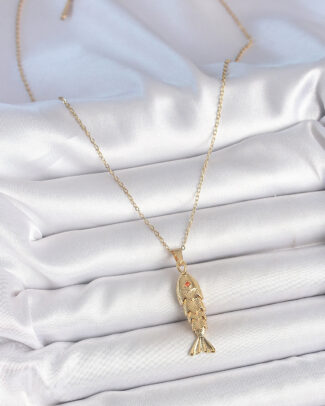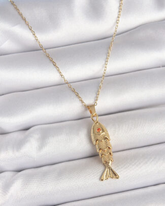 316L Çelik Zincir Gold Renk Zirkon Taşlı Balık Figürlü Kolye