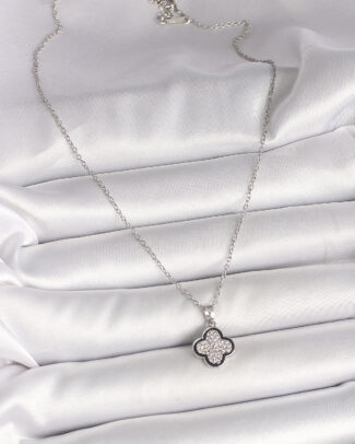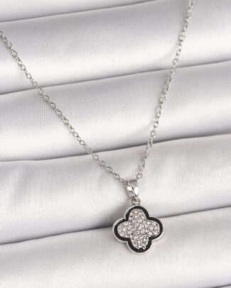 316L Çelik Gümüş Renk Zincir Zirkon Taşlı Yonca Model Kadın Kolye