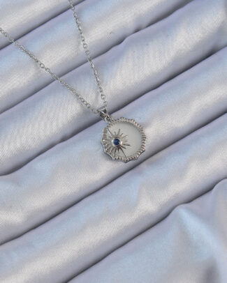 316L Çelik Gümüş Renk Zirkon Taşlı Mineli Kutup Yıldızı Kolye