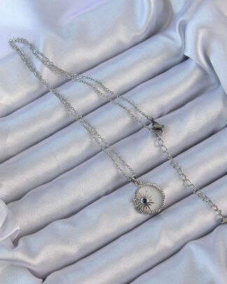 316L Çelik Gümüş Renk Mavi Sedefli Hilal Model Kadın Kolye