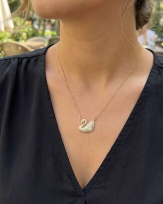 316L Çelik Zincir Altın Renk Zirkon Taşlı Kuğu Kolye