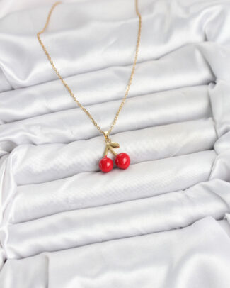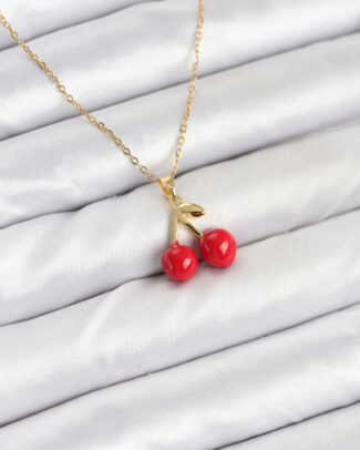 316L Çelik Zincir Gold Renk Kiraz Model Kadın Kolye