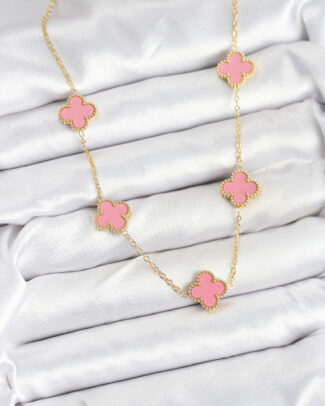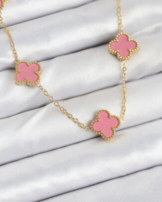 316L Çelik Zincir Gold Pembe Renk Yonca Kadın Kolye