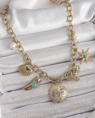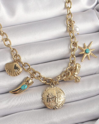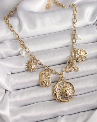 316L Çelik Gold Renk Zincir Sallantılı Çoklu Figür Model Kadın Kolye