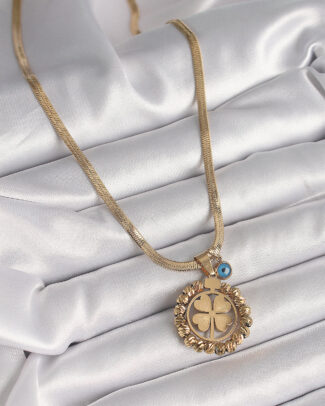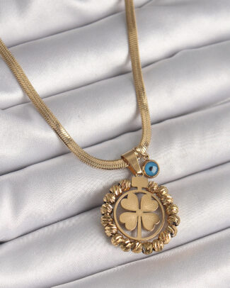 316L Çelik Gold Renk İtalyan Zincir Dorika Yonca Model Nazar Boncuk Detay Kadın Kolye