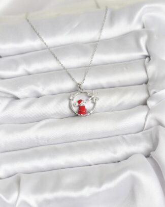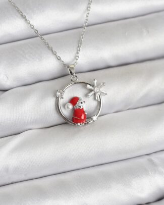 316L Çelik Zincir Gümüş Renk Kızak ve Çam Ağacı Figürlü Yılbaşı Temalı Kadın Kolye