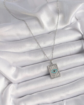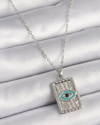 316L Çelik Gümüş Renk Zirkon Taşlı Göz İşleme Detaylı Plaka Model Kadın Kolye