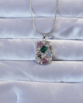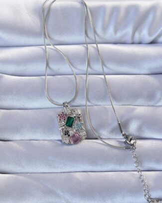 316L Gümüş Renk Çok Renkli Zirkon Taşlı Vintage Kolye