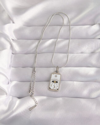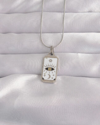 316L Çelik Gümüş Renk Beyaz Mineli Göz Figür Tarot Kolye