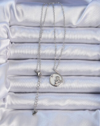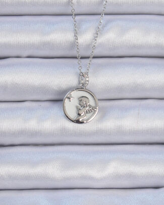 316L Çelik Zincir Gümüş Renk Zirkon Taşlı Mineli Melek Kolye