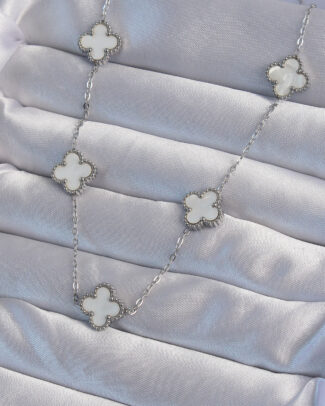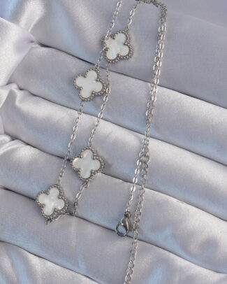 316L Çelik Gümüş Renk Beyaz Sedefli Yonca Kolye