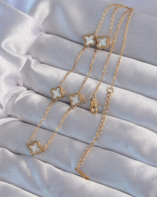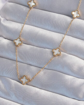 316L Çelik Gold Renk Minimal Beyaz Sedefli Yonca Kolye