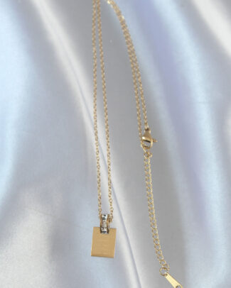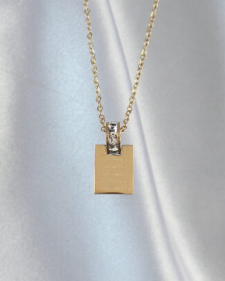 316L Çelik Gold Renk Kare Charm Model Kolye