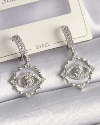 Pirinç Gümüş Renk Zirkon Taşlı Göz Model Kadın Küpe
