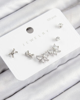 Pirinç Zirkon Taşlı Kelebek Model Gümüş Renk 925 Ayar Gümüş Çivi Kadın Küpe Set