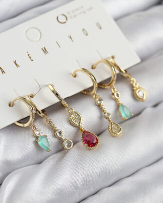 Pirinç Zirkon Taşlı Sallantılı Model Gold Renk 6’lı Küpe Set