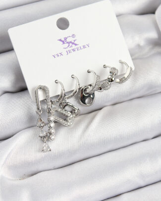 Pirinç Zİrkon Taşlı Dikdörtgen Model Gümüş Renk 3’lü Çift Kadın Küpe