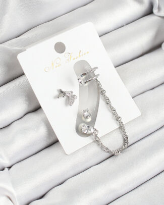 Pirinç Kelebek Figürlü Zirkon Taşlı Gümüş Renk 3’lü Kıkırdak Kadın Küpe Set