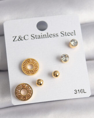 316L Çelik Gold Renk Zirkon Taşı Labirent Model Kadın Küpe Seti